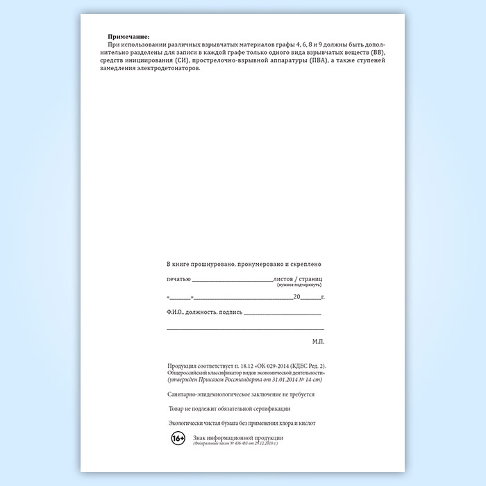 Книга учета выдачи и возврата взрывчатых материалов в Сочи купить