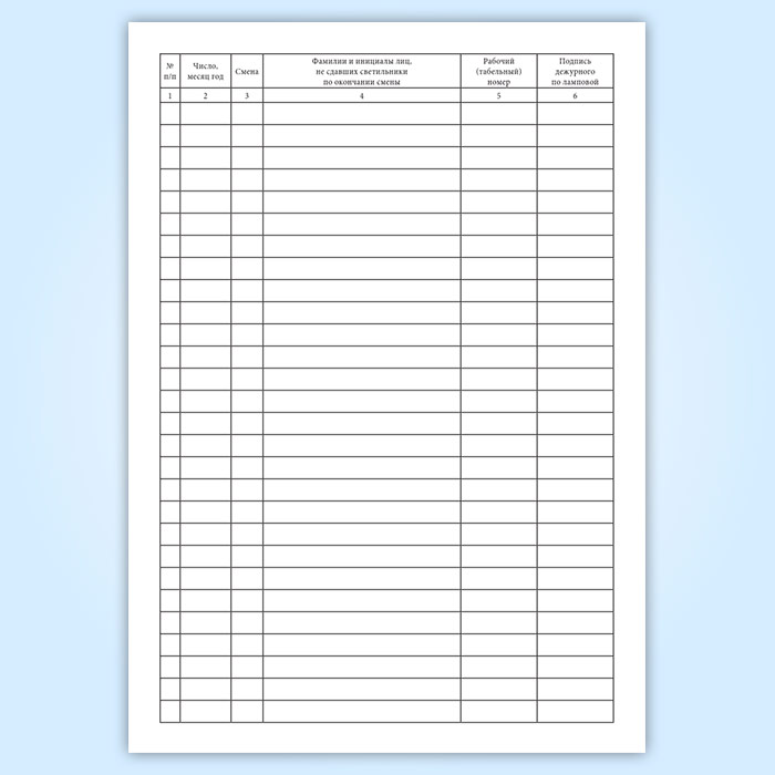 Журнал записи фамилий лиц, не сдавших светильники по окончании смены в Сочи купить