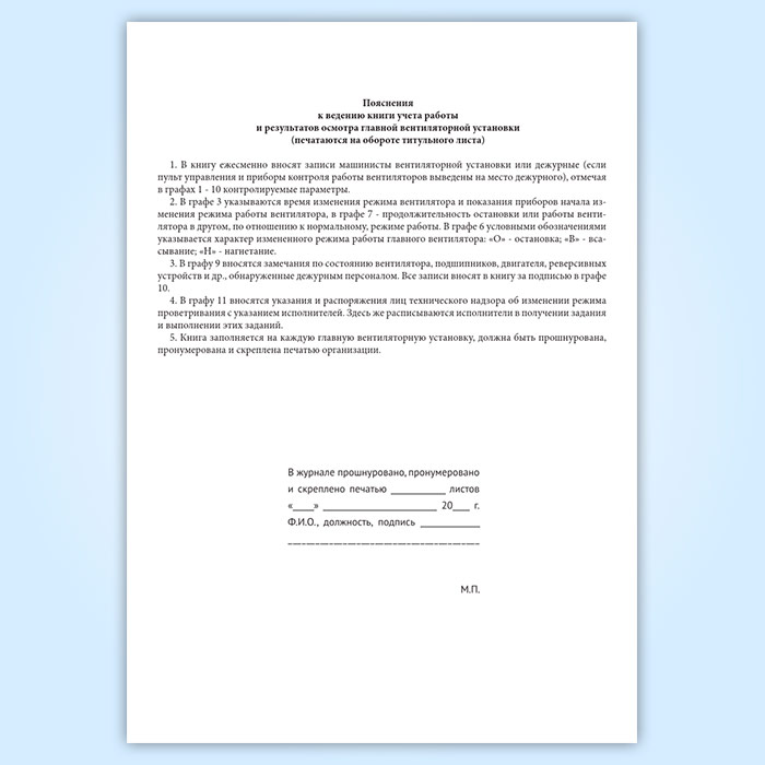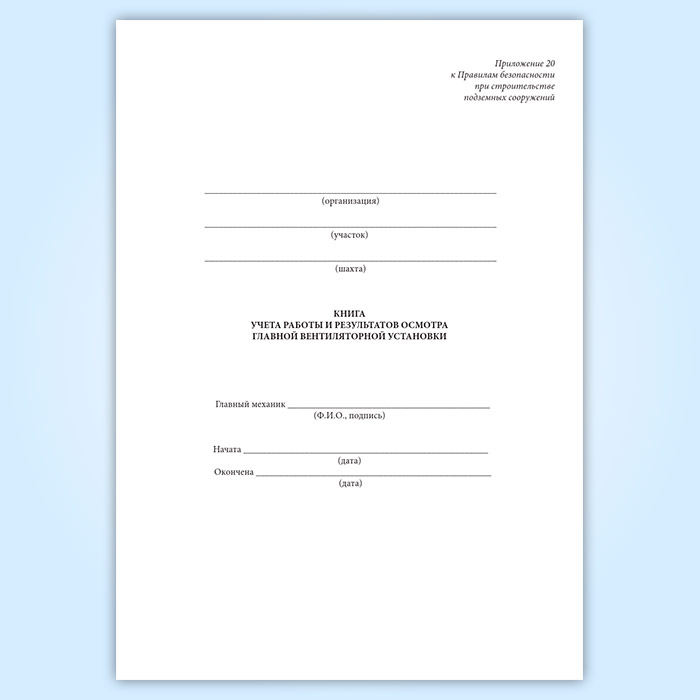 Книга учета работы и результатов осмотра главной вентиляторной установки в Сочи купить