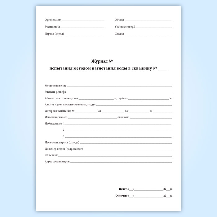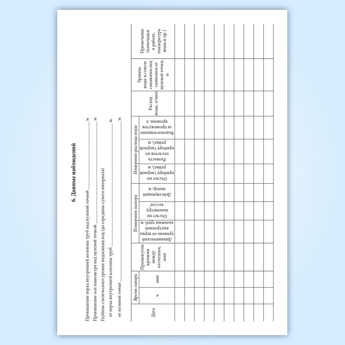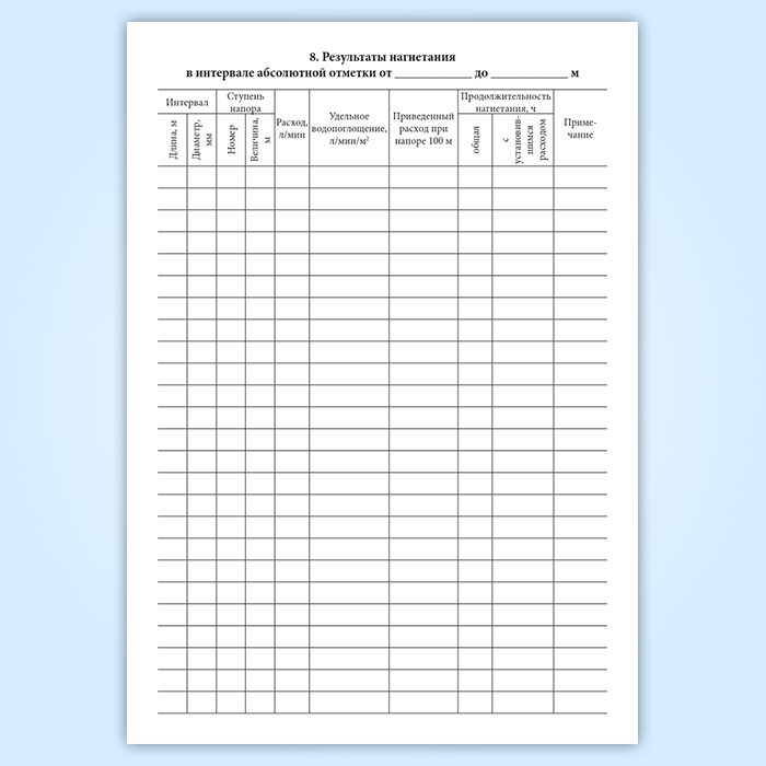Журнал испытания методом нагнетания воды в скважину в Сочи купить
