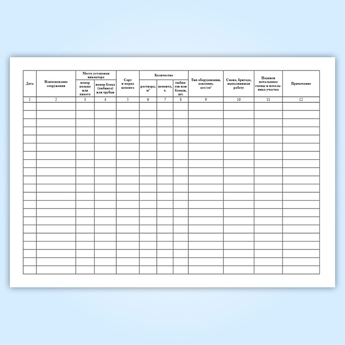Журнал контрольного нагнетания цемента за обделку в Сочи купить