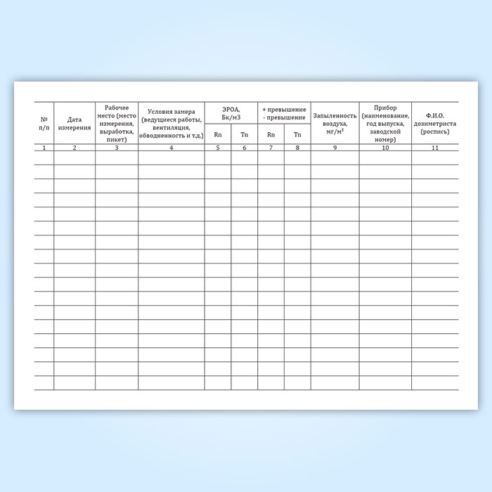 Журнал плановых и оперативных замеров радиационных параметров на рабочих местах в горных выработках в Сочи купить