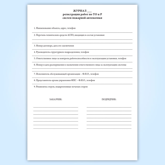Журнал регистрации работ по ТО и Р систем пожарной автоматики в Сочи купить