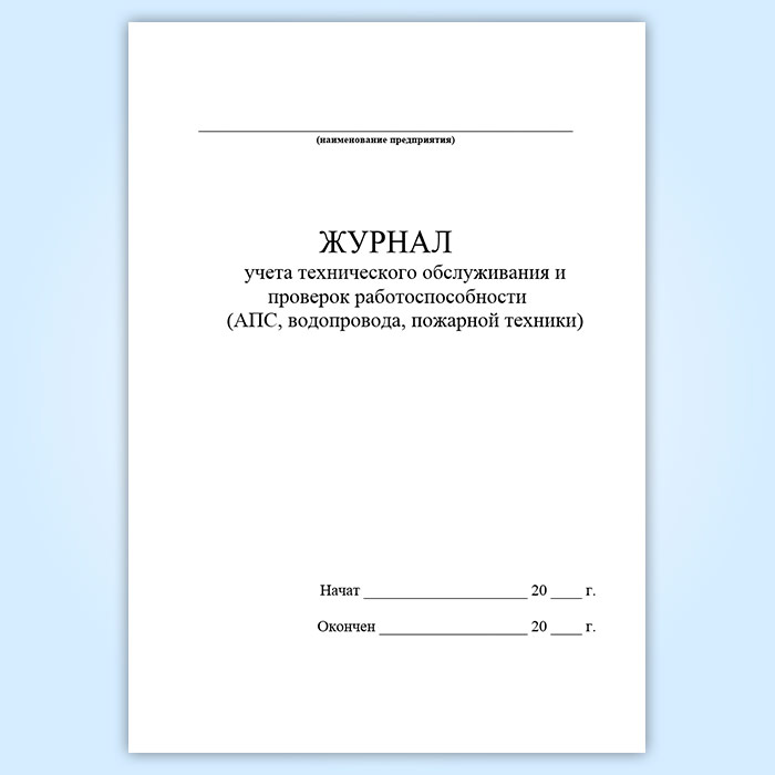 Журнал учета технического обслуживания и проверок работоспособности (АПС, водопровода, пожарной техники) в Сочи купить