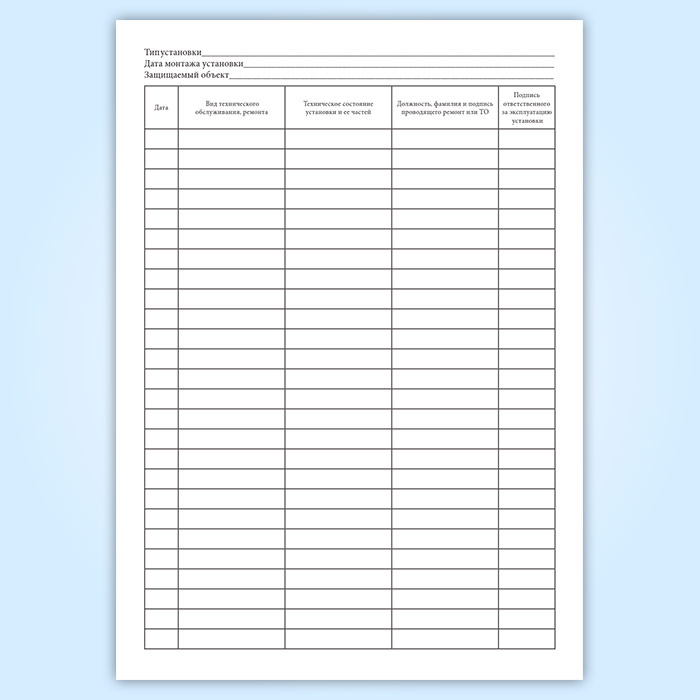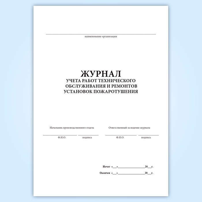 Журнал учета работ технического обслуживания и ремонтов установок пожаротушения в Сочи купить