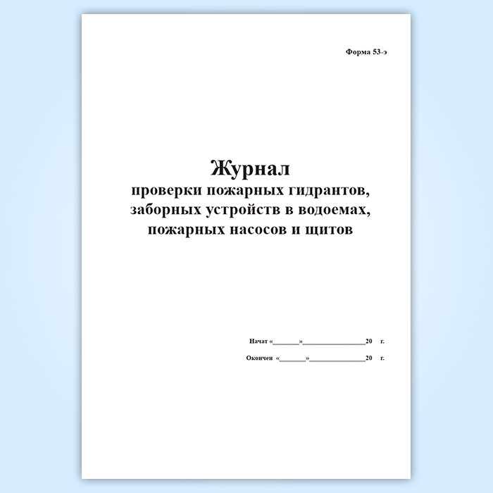 Журнал проверки пожарных гидрантов, заборных устройств в водоемах, пожарных насосов и щитов (форма 53-э) в Сочи купить