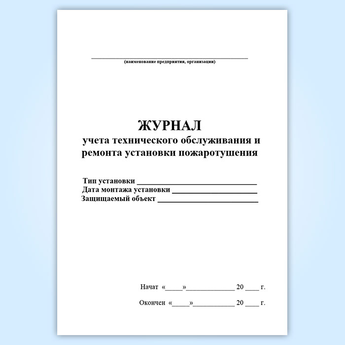 Журнал учета технического обслуживания и ремонта установки пожаротушения в Сочи купить
