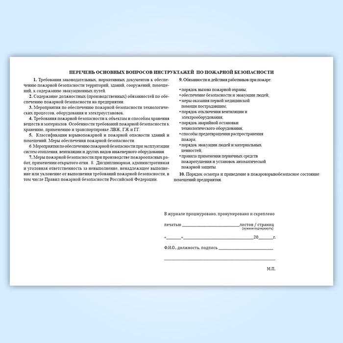 Журнал регистрации инструктажей по пожарной безопасности в Сочи купить