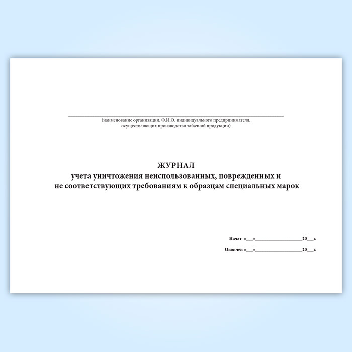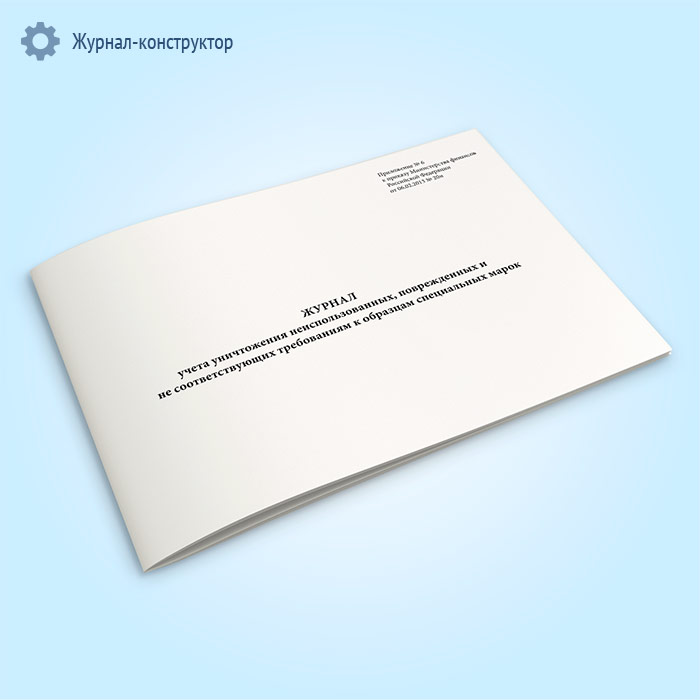 Журнал учета уничтожения неиспользованных, поврежденных и не соответствующих требованиям к образцам специальных марок в Сочи купить