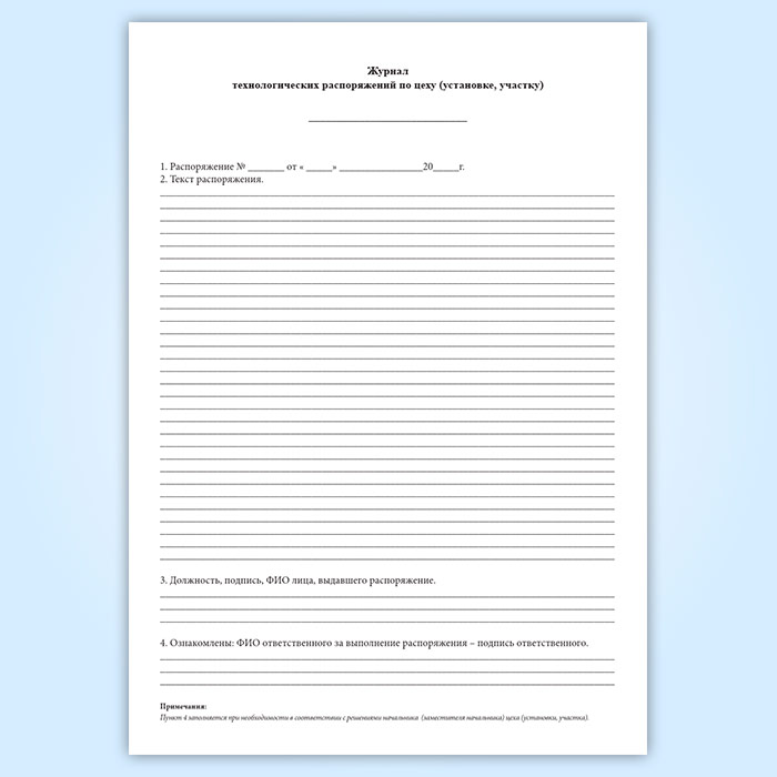 Журнал технологических распоряжений по цеху (установке, участку) в Сочи купить