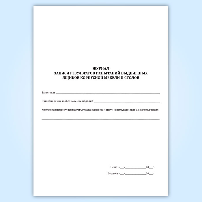 Журнал записи результатов испытаний выдвижных ящиков корпусной мебели и столов в Сочи купить