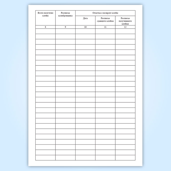 Журнал выдачи и получения калибровочных клейм в Сочи купить