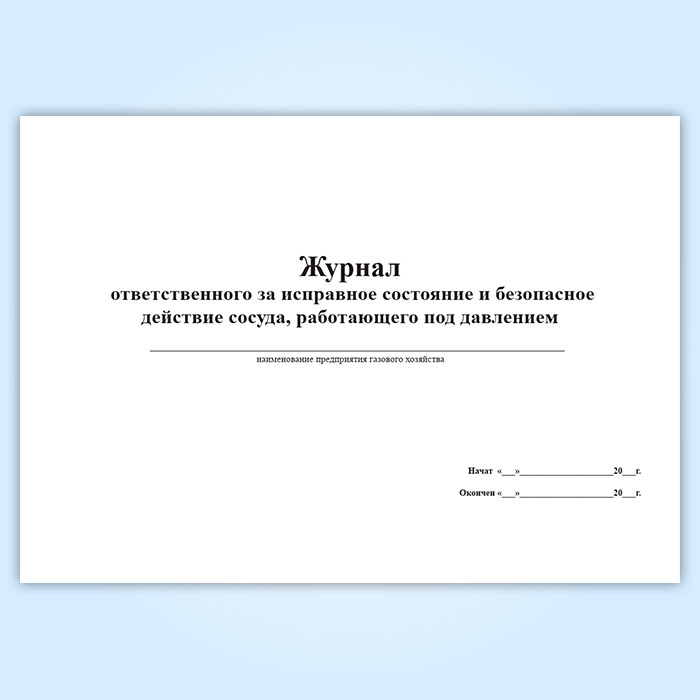 Журнал ответственного за исправное состояние и безопасное действие сосуда, работающего под давлением в Сочи купить