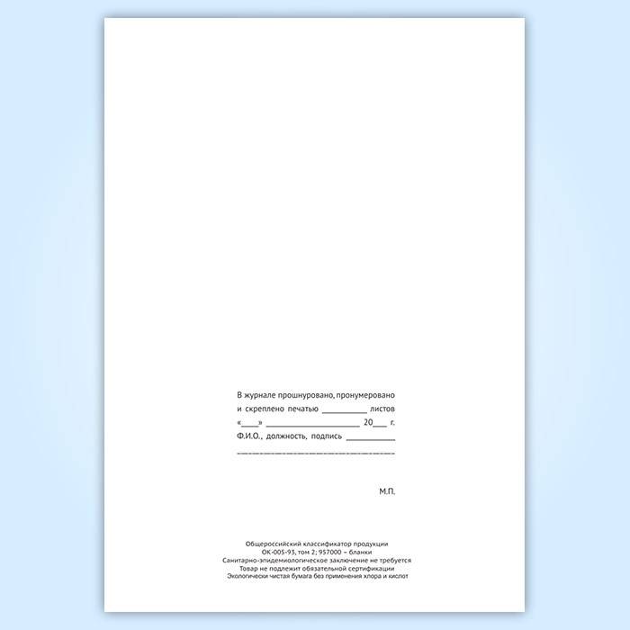 Вы получаете печатную продукцию прошнурованной и c местом для вашей печати в соответствии с действующими нормативными документами: