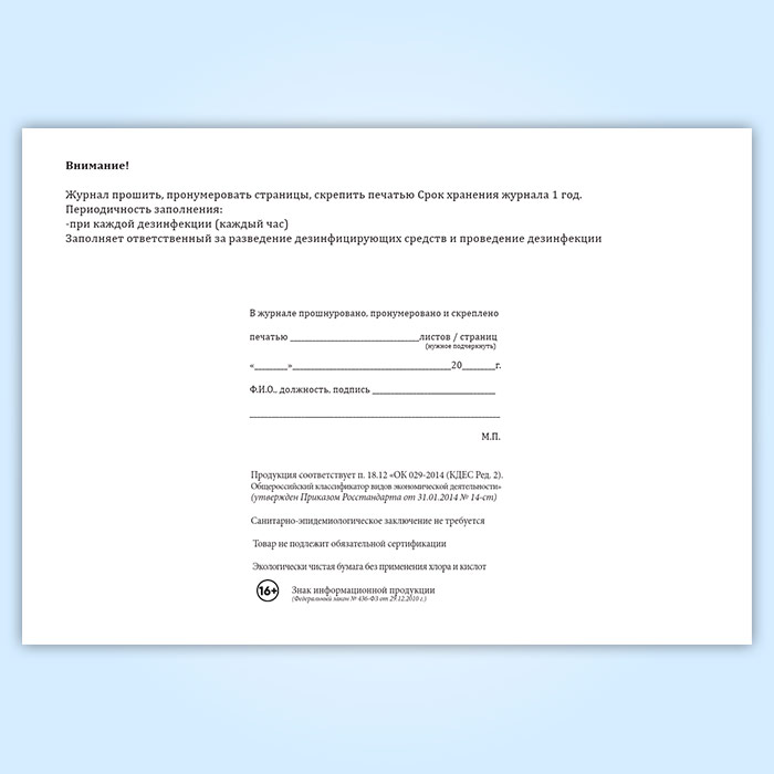 Журнал учета дезинфекций поверхностей в рамках профилактики распространения коронавирусной инфекции COVID-19 в Сочи купить
