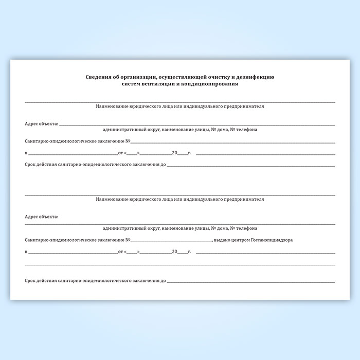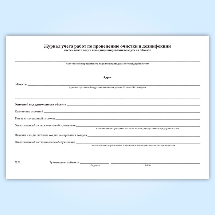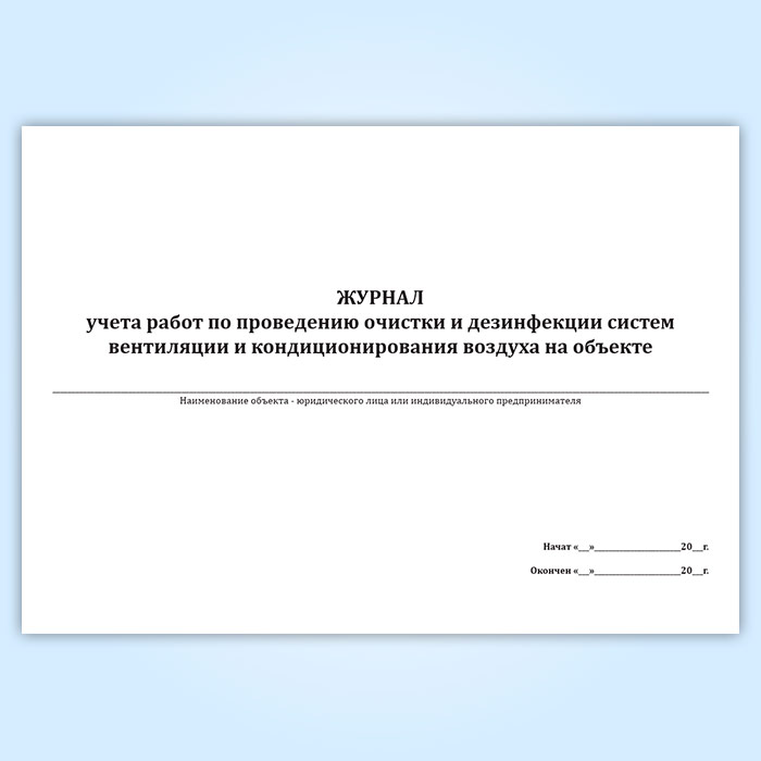 Журнал учета работ по проведению очистки и дезинфекции систем вентиляции и кондиционирования воздуха на объекте в Сочи купить
