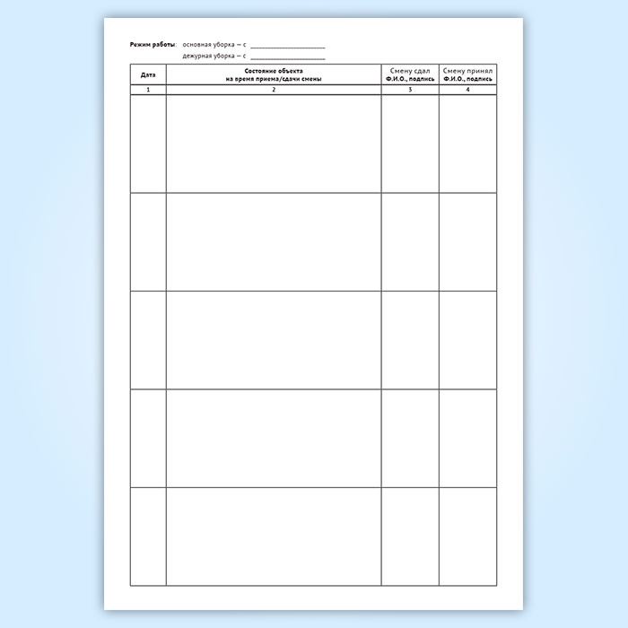 Журнал приема-сдачи смен (для уборки помещения) в Сочи купить