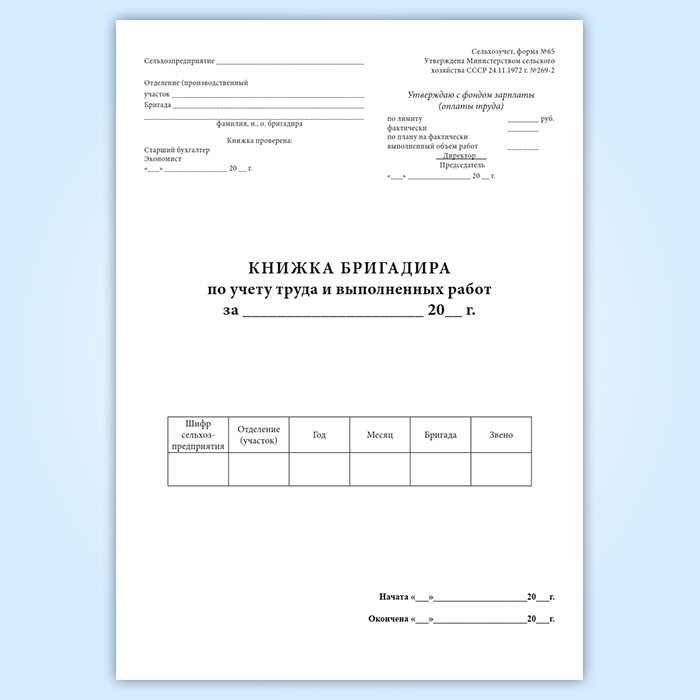 Книга бригадира по учету труда и выполненных работ (форма 65) в Сочи купить