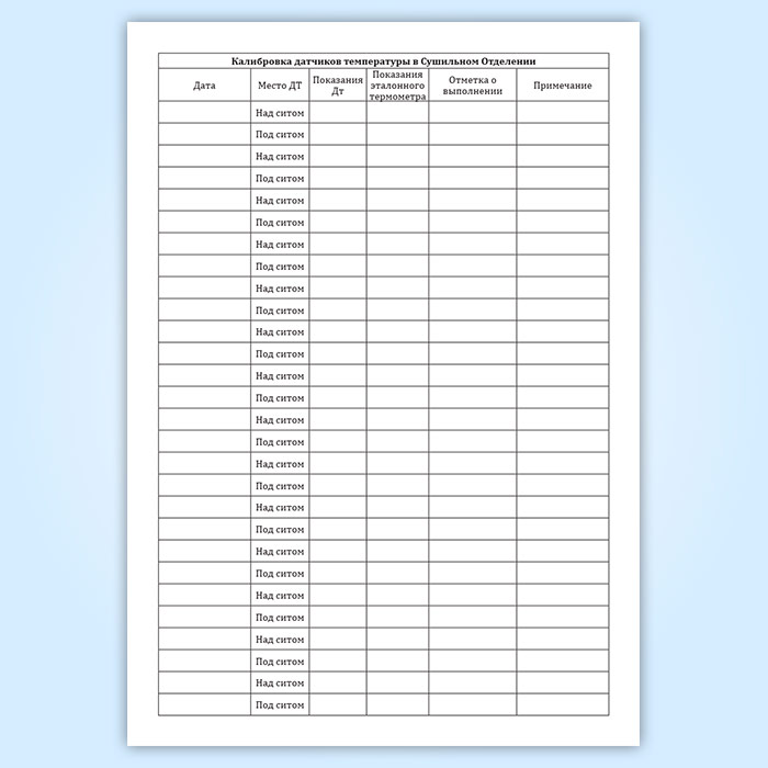 Журнал калибровки датчиков температуры в сушильном отделении в Сочи купить