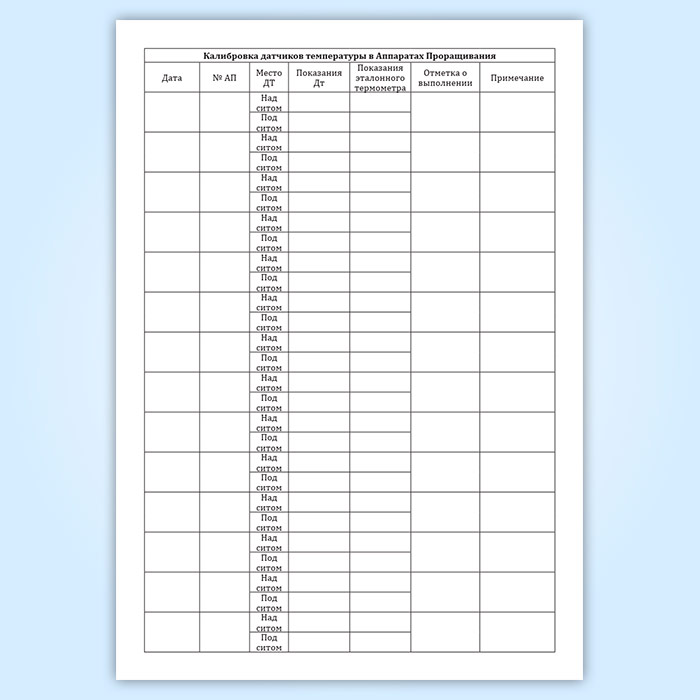 Журнал калибровки датчиков температуры в аппаратах проращивания в Сочи купить
