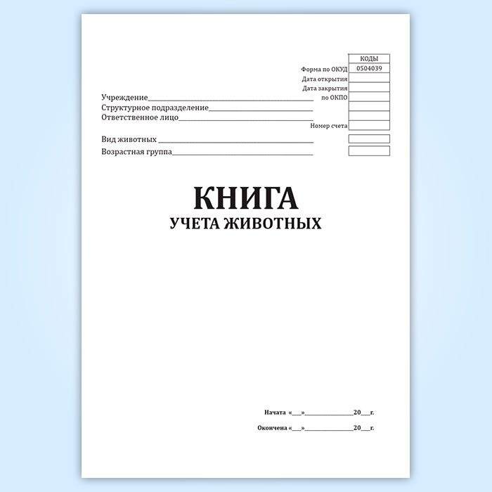 Книга учета животных (форма 0504039) в Сочи купить