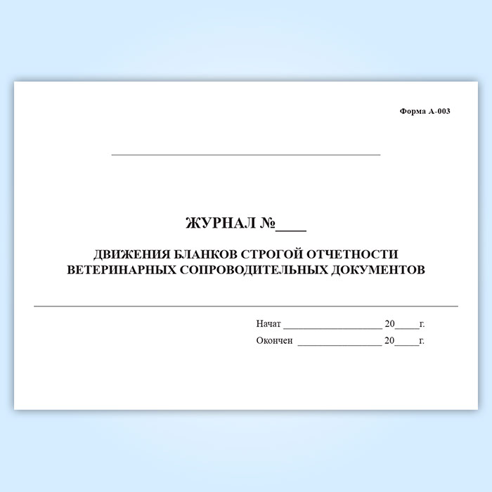 Журнал движения бланков строгой отчетности ветеринарных сопроводительных документов (форма А-003) в Сочи купить