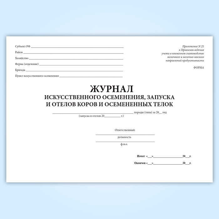 Журнал искусственного осеменения, запуска и отелов коров и осемененных телок в Сочи купить