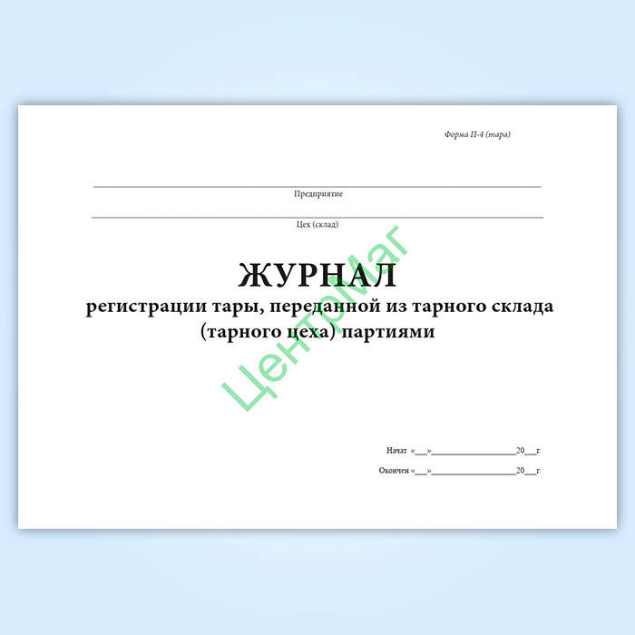 Журнал регистрации тары, переданной из тарного склада (тарного цеха) партиями (форма № П-4 тара) в Сочи купить