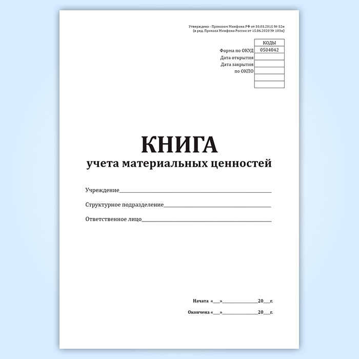 Книга учета материальных ценностей (форма по ОКУД 0504042) в Сочи купить