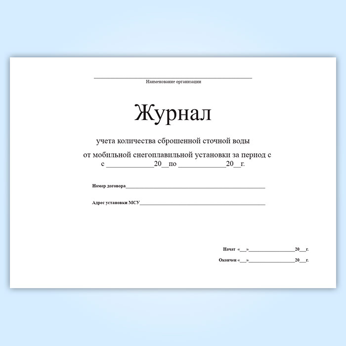 Журнал учета количества сброшенной сточной воды от мобильной снегоплавильной установки в Сочи купить