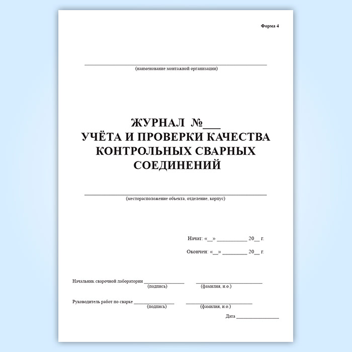 Журнал учета и проверки качества контрольных сварных соединений (форма 4) в Сочи купить