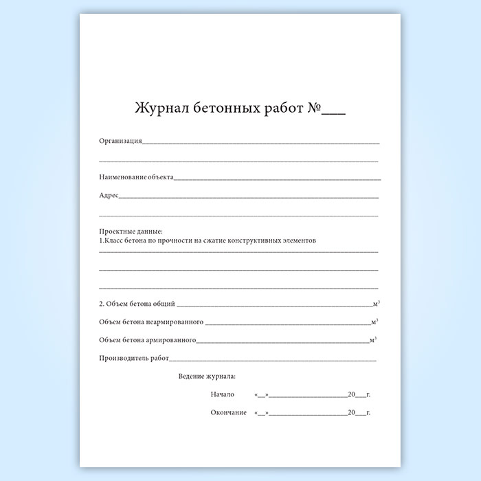 Журнал бетонных работ в Сочи купить