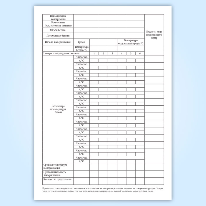 Журнал регистрации температуры бетона в монолитных конструкциях в Сочи купить
