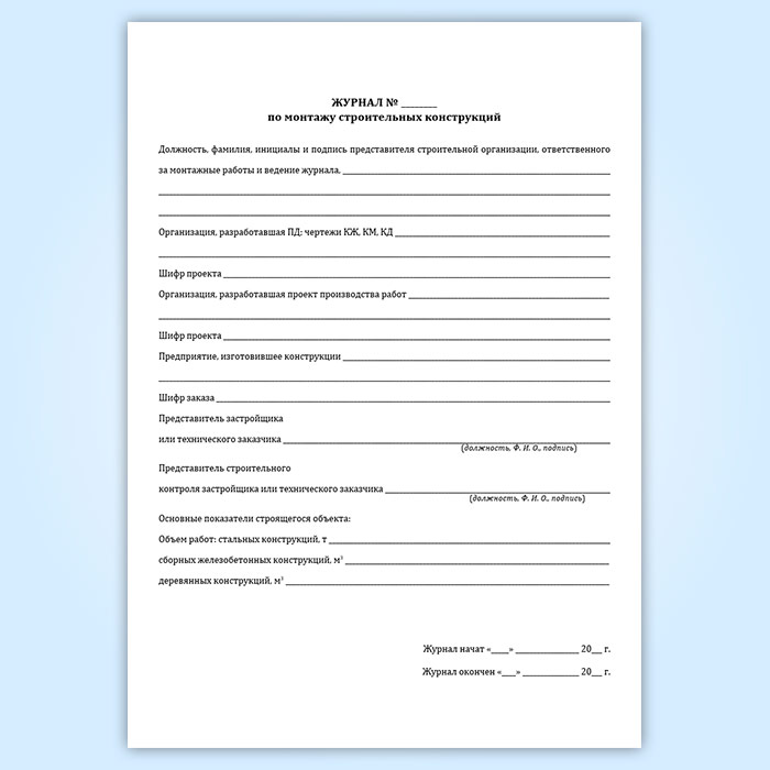 Журнал по монтажу строительных конструкций (форма 12.2) в Сочи купить