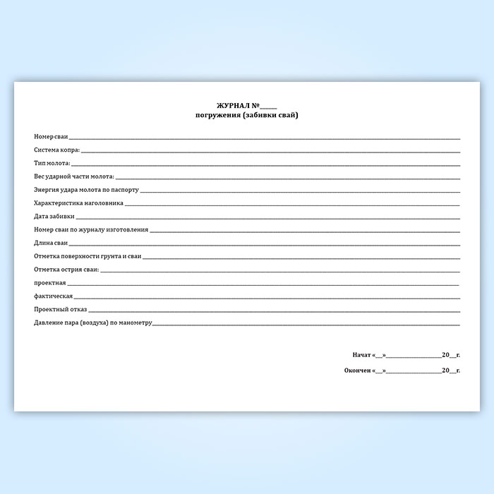 Журнал погружения (забивки свай) (форма 4.1) в Сочи купить