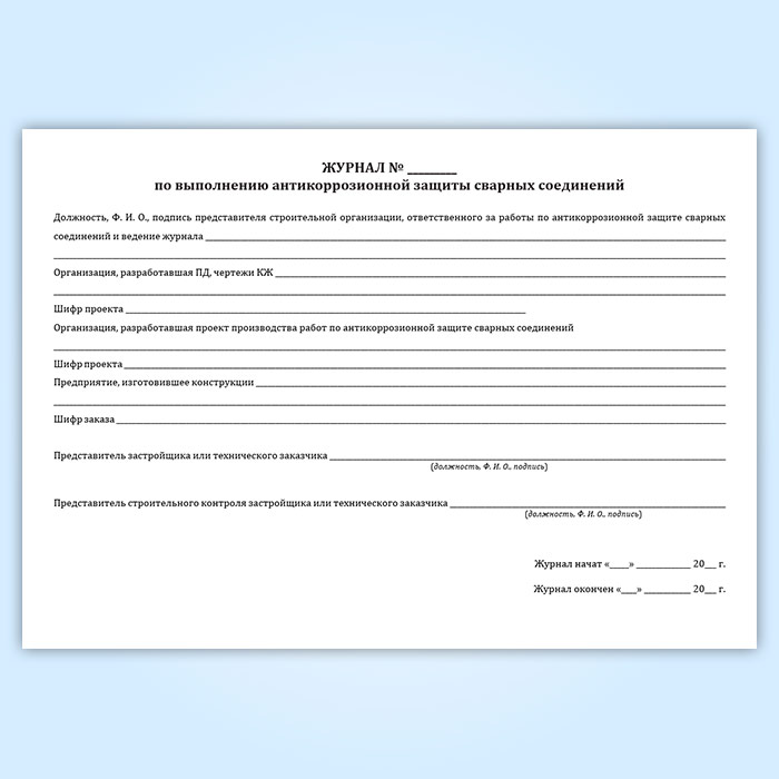Журнал по выполнению антикоррозионной защиты сварных соединений (форма 12.3) в Сочи купить