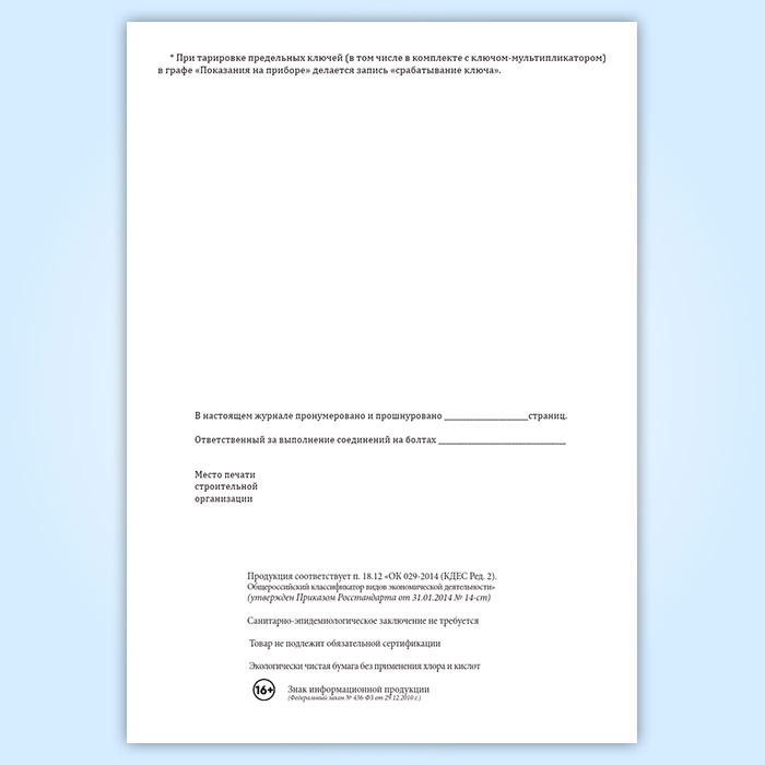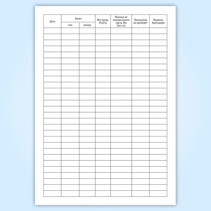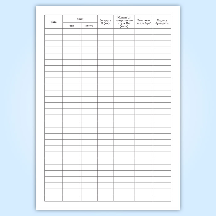 Журнал контрольной тарировки динамометрических ключей (СТО НОСТРОЙ 2.10.76-2012) в Сочи купить