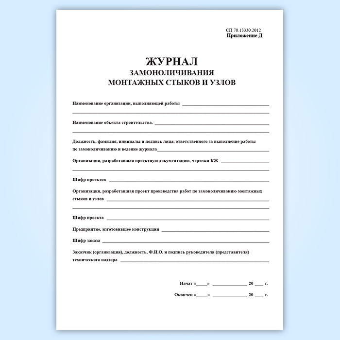 Журнал замоноличивания монтажных стыков и узлов в Сочи купить