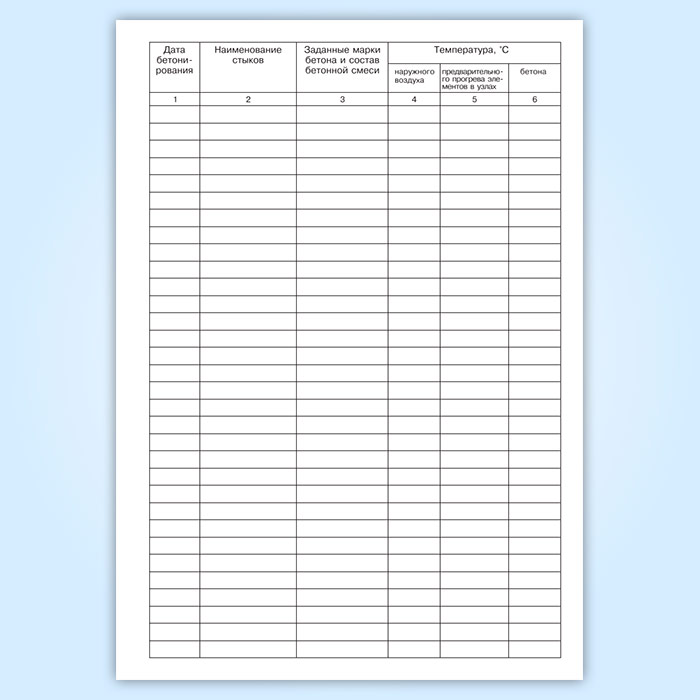 Журнал работ по бетонированию в Сочи купить