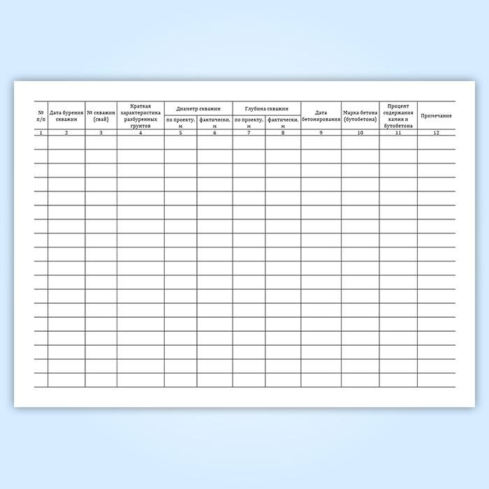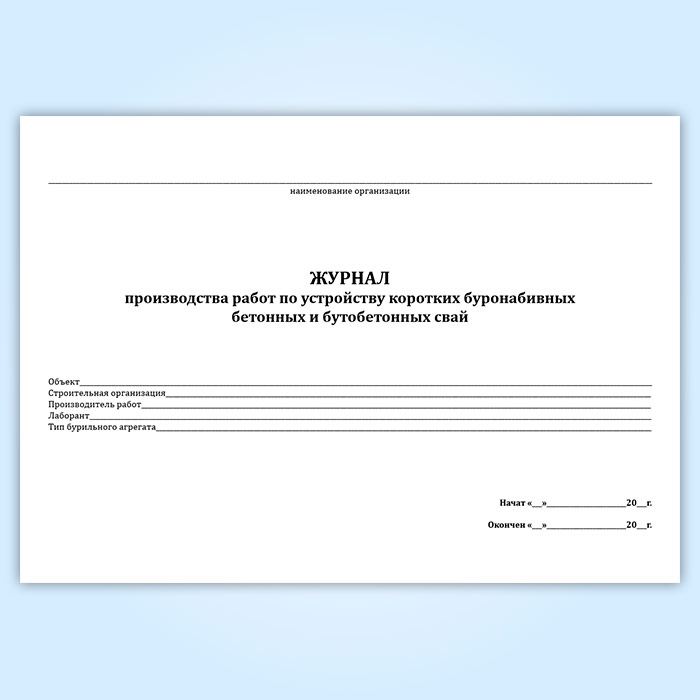 Журнал производства работ по устройству коротких буронабивных бетонных и бутобетонных свай в Сочи купить
