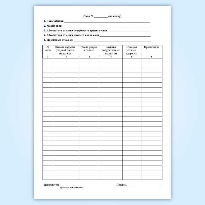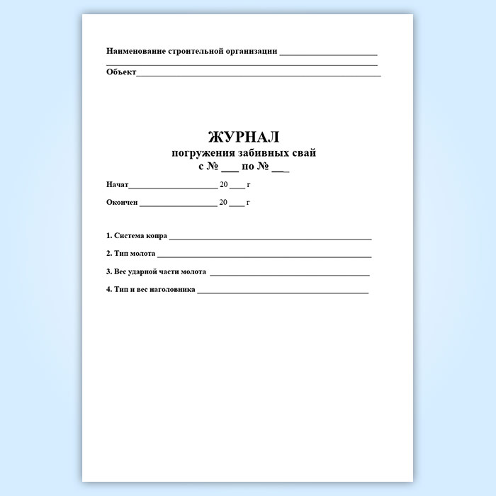 Журнал погружения забивных свай в Сочи купить