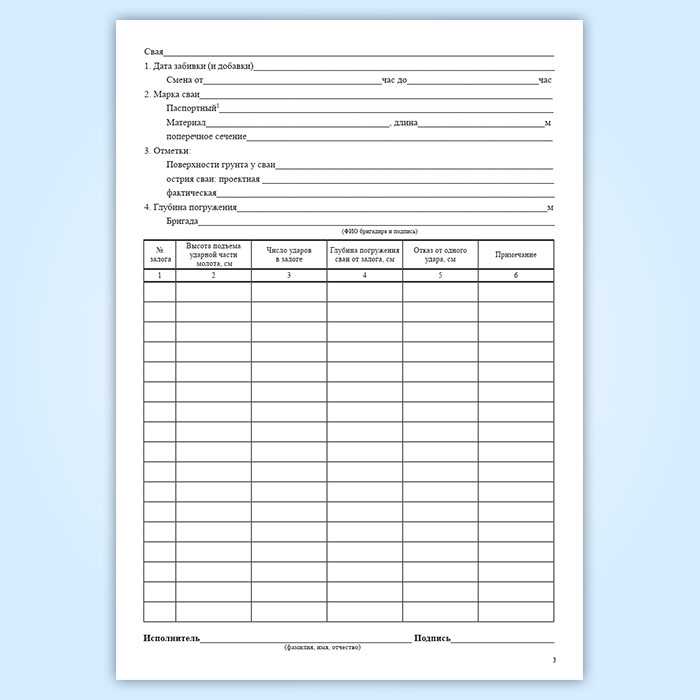 Журнал погружения свай (свай-оболочек) в Сочи купить