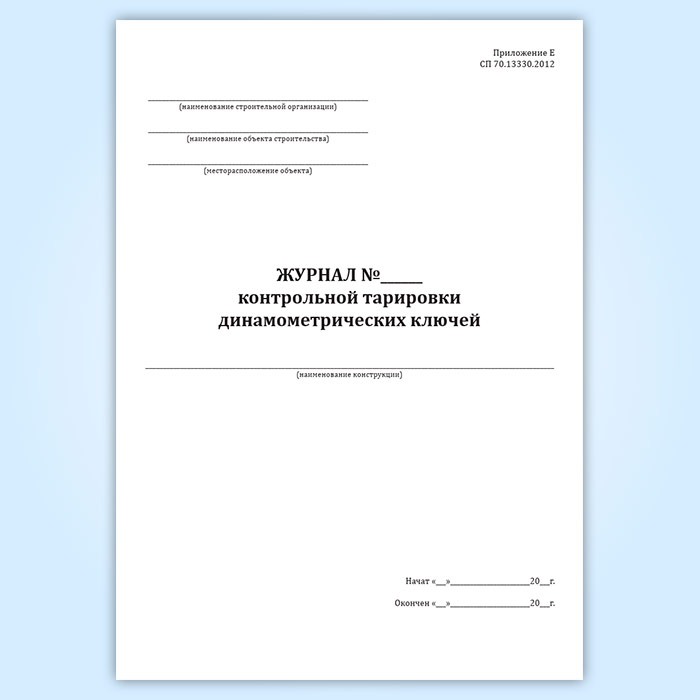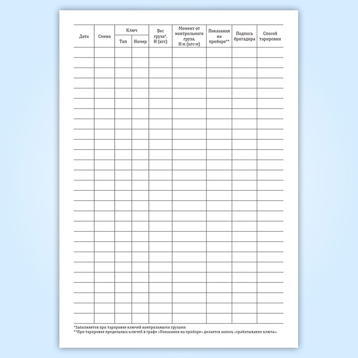 Журнал контрольной тарировки динамометрических ключей в Сочи купить