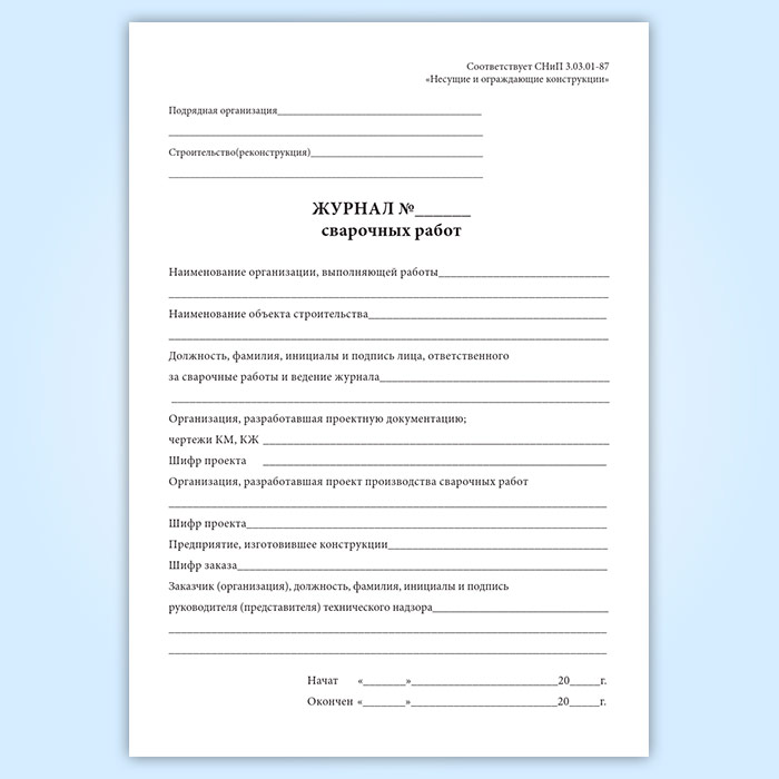 Журнал сварочных работ (СНиП 30301-87) в Сочи купить