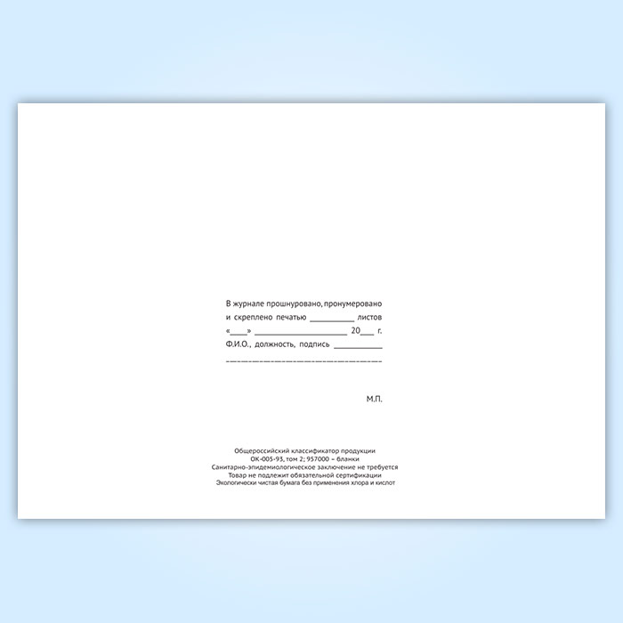 Вы получаете печатную продукцию прошнурованной и c местом для вашей печати в соответствии с действующими нормативными документами: