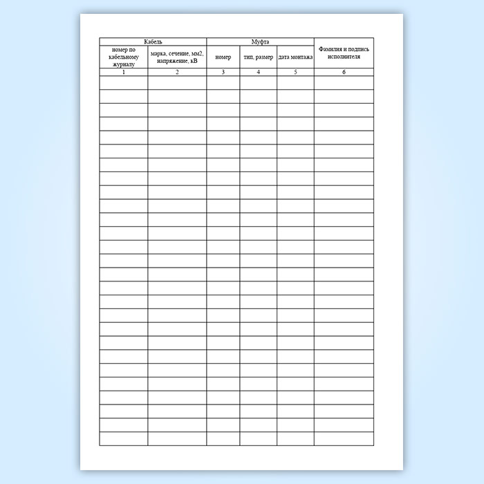Журнал монтажа кабельных муфт напряжением до 1000 В в Сочи купить
