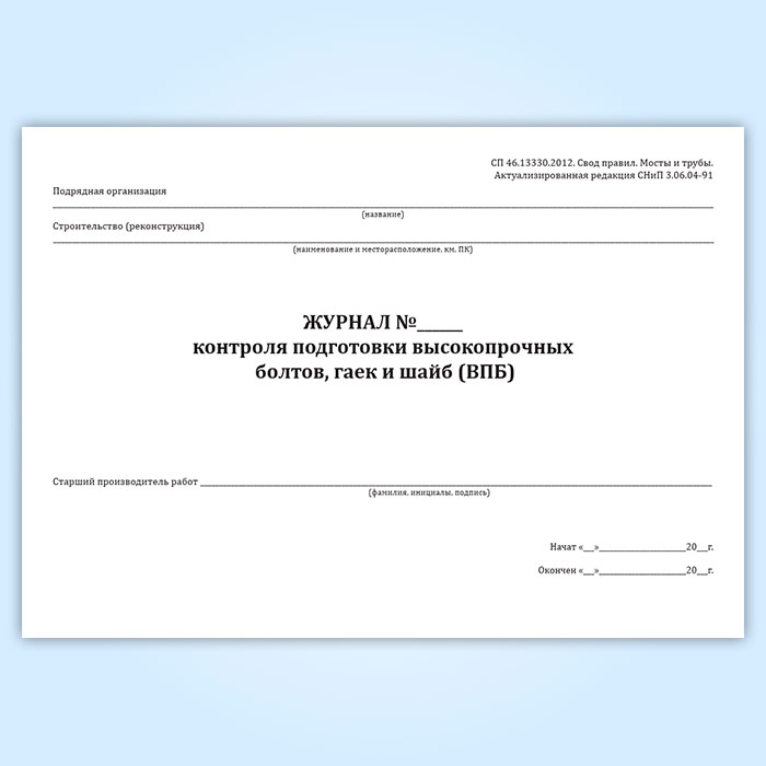 Журнал контроля подготовки высокопрочных болтов, гаек и шайб в Сочи купить