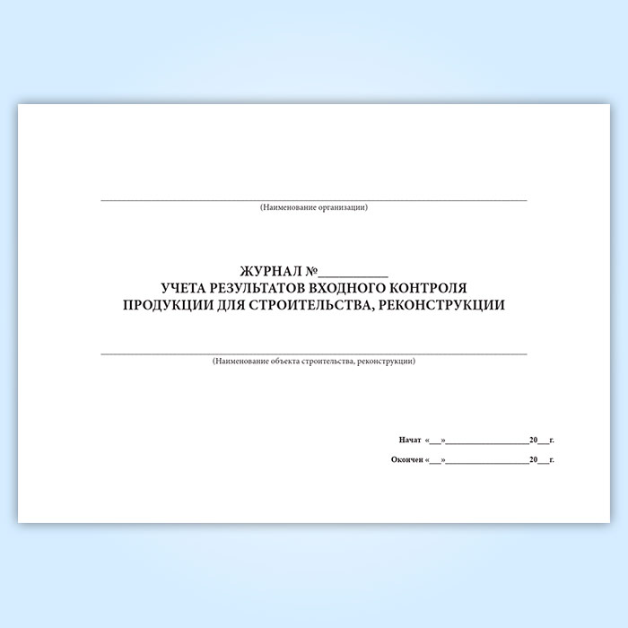 Журнал учета результатов входного контроля продукции для строительства, реконструкции в Сочи купить
