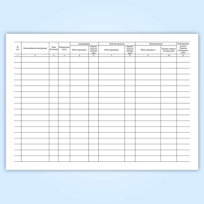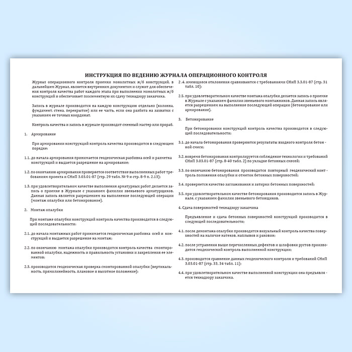 Журнал операционного контроля приемки монолитных железобетонных конструкций в Сочи купить