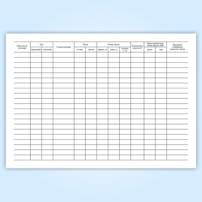 Журнал результатов по определению прочности бетона эталонным молотком Кашкарова в Сочи купить